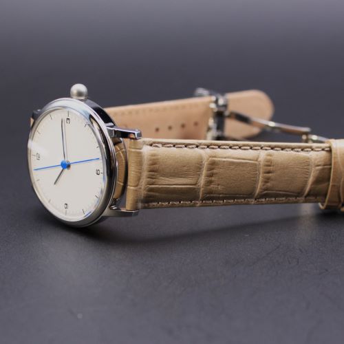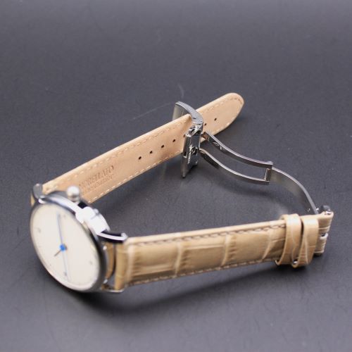 当該品はSPQR公式サイト限定仕様のプロトです。お洒落なイタリアMORELLATO社のベージュ革を組み合わせました。クリッカー付きですので治工具なしでワンタッチでベルト交換が可能です。 Uタイプワンプッシュ式の三つ折れバックルを装備してますので腕からの不意の落下を防止します。