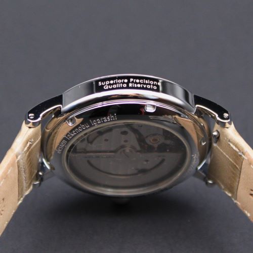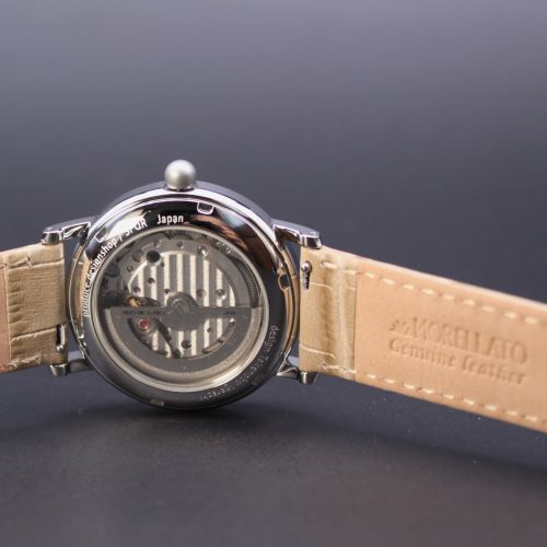 ◆商品名:五十嵐威暢earthwatch ◆商品コード:20anmo ◆ケース:ステンレススチール/スケルトン裏蓋 ◆ガラス:球面サファイアガラス ◆文字盤:白全面印刷 ◆防水:5気圧防水 ◆駆動時間:約42時間 ◆精度:日差±35秒 ◆バンド:イタリアモレラート/Uタイプバックル ◆ケース外径:Φ37mm ◆ケース厚み:11.6mm ◆重さ:55g ◆生産国:日本