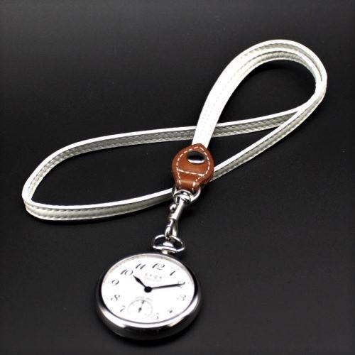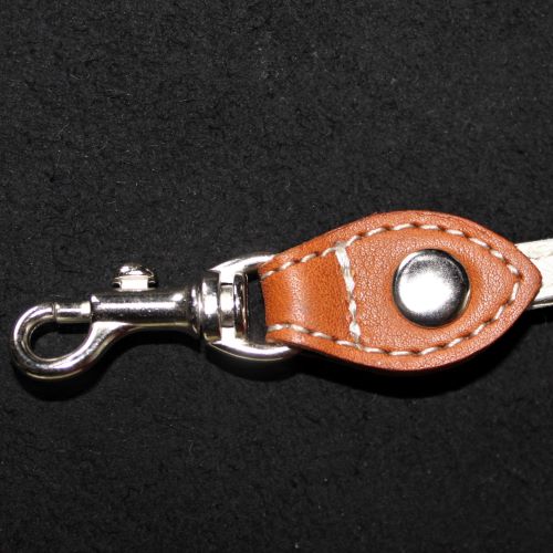 時計企画室コスタンテ と 国内唯一の馬具メーカーである北海道のソメスサドル社 と共同開発しました。 あらゆる提げ時計に安全装備できるよう 耐久性が非常に高い SOMES厳選の高級革 を特別に使わせていただきました。 革の先端部に装着するループ金具はバネを軽く指先で開閉するタイプ。 素材はステンレススチールです。 ハトメには 「SOMES SADDLE」 と刻印されています。 使用方法はループして腰ベルトに巻きつけて良し、カバンのグリップにくくりつけても良し、ネックに提げても良し。 多用途に応えられます。 革の長さは約65cm、革幅は約6mm、革厚みは約2mmです。
