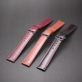 上質な16mm幅のカーフバンドです。マット仕上ですので、あらゆる時計にフィットします。バックルはステンレススチールのミラー仕上げ。裏側は柔らかなベージュのバックスキン仕様です。革色はブラウン、ワインレッド、ブラックの3カラーです。リーゾナブルな価格でご提供します。