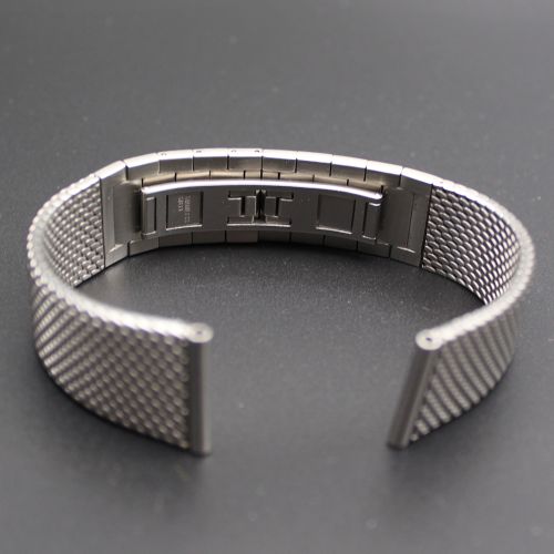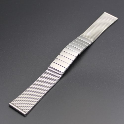 ◆商品名:20mmステンレス メッシュバンド ◆商品コード:SSB20 ◆素材:ステンレススチール ◆仕上:メッシュ織り ミラー仕上 ◆中留:観音開き ◆長さ整駒:駒調整 ◆幅:20mm ◆全長:180mm ◆厚み:2mm