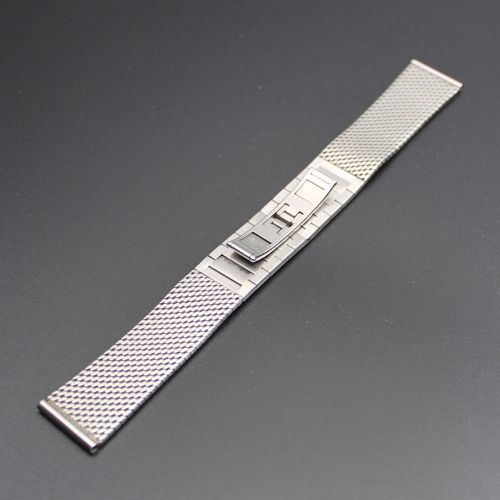 国内の名門バンドメーカー製 S P Q R 特選ステンレス メッシュバンド です。 比較的細い番線で繊細しなやかな織りのミラー仕上げメッシュ ですので着け 心地は抜群です。 バックルは観音開き方式の筋目仕上げですので脱着時に非常に便利です。 バンドの長さ調整は駒外し構造で簡単に行えます。