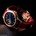 信州・木曽漆の伝統工芸士で長野五輪のメダル制作に携わった荻上 文峰氏による匠の卓越した技法で、2ヶ月の時間を要して文字盤と竜頭が完成します。奥深い藍色文字盤とピンクゴールドのケースの絶妙な色のバランス。9時位置には時計の心臓部「てんぷ」の1秒間に6回の鼓動を、目で楽しむことができる国産機械式ムーブメントを搭載しています。