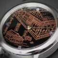 信州・木曽漆の伝統工芸士で長野五輪のメダル制作に携わった荻上 文峰氏による匠の卓越した技法で、2ヶ月の時間を要して文字盤と竜頭が完成します。奥深い手描き漆文字盤とステンレススチールのケースの絶妙な色のバランス。
