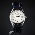 世界的にも希少なパワーリザーブ機能を搭載し、残りの駆動時間をインジケーターで表示します。 電池交換が不要で、動力を与える限り半永久的に動き続けます。 針のカラーリングはブルーIP(イオンプレーティング)を採用しています。 電子イオン化したチタンを蒸着させる着色法で、光の屈折により深いメタリックブルーの色合いが変化します。