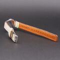 ◆商品名:高級車シート革バンド(パンチングあり・なし) ◆商品コード:SOM-P ◆素材:国産高級車のシート革 ◆仕上:マット仕上/ライトブラウン裏革 ◆バックル:ステンレススチール ◆幅:14mm ◆全長:約6.5cm(12時側)×約12cm(6時側) ◆厚み:約3mm