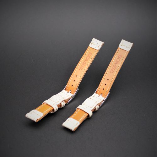 仕様は高級車シートのままのマット仕上げとなっています。SPQR×SOMESのコラボレーションバンドですので、裏革には「SOMES」の刻印が際立ちます。裏革も薄いライトブラウンの牛革を採用しましたので、表革とマッチングして、全体のイメージは大変おしゃれです。ドレスウォッチバンドの代替用としても最適です。