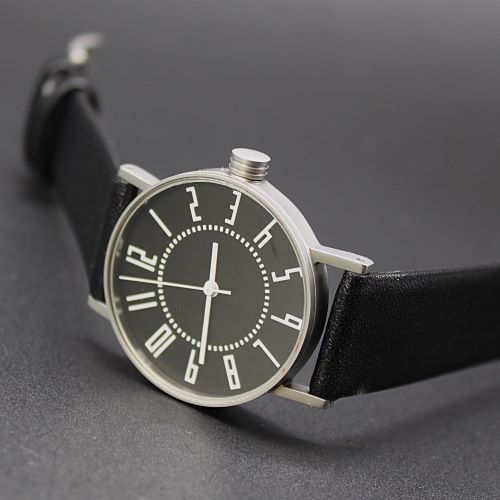 この駅時計のデザインを腕時計として開発しました。 オリジナル数字による読み易く美しい文字盤のデザインに仕上がっており、ウォッチは薄く堅牢で特別設計の 隠しプラ直 と呼ばれる究極の幅のガラス縁を実現した高い技術に裏づけされたシンプルなステンレスとサファイアガラスのケース、。 日常生活防水、究極のベーシックデザインを追及してグッドデザイン賞2006受賞。