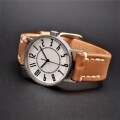◆商品名:「eki watch」 ◆商品コード:ew-37somes ◆ケース材質:ステンレススチール/ホーニング仕上 ◆防水性:日常生活防水 ◆風防:サファイアガラス ◆裏蓋:ステンレススチール/ホーニング仕上 ◆文字盤:白 ◆ケース外径:φ37mm ◆厚さ:約9mm ◆重量:40g ◆ムーブメント:セイコーエプソン製薄型3針AQ(アナログクォーツ) ◆精度:月差±15秒 ◆バンド:SOMESサドルレザー+SS尾錠 ◆原産国:日本