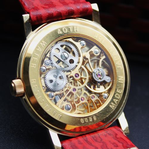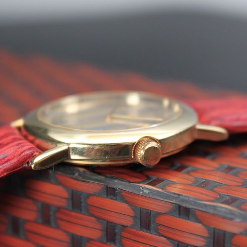◆商品名: 小型婦人用金無垢(原 久デザイン) ◆商品コード:hara009 ◆ケース:K18 ◆風防:無機ガラス ◆防水:3気圧防水 ◆裏蓋:ステンレス・スチール ◆ムーブメント:国内機械式17石手巻き ◆バンド:ワインレッド・シャーク ◆サイズ:外径Φ32mm ◆厚さ:6mm ◆重さ:約20g ◆原産国:日本