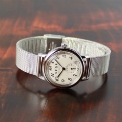 ◆商品名:THE SPQR LQ (小型クオーツ) ◆商品コード:lqlq ◆ケース:外径φ28mm×厚み8..5mm ステンレススチール ◆文字盤:アイボリー・ブラック ・アラビア+6時小秒針 ◆ガラス:ボックス型無機ガラス ◆防水:日常生活防水 ◆重量:約30g ◆手首サイズ:約17cm~約21cm ◆ムーブメント:国内メーカー製2針+小秒針 ◆電池寿命:約3年 ◆精度:月差±20秒 ◆バンド:ステンレスメッシュ×スライド式バックル ◆生産国:日本