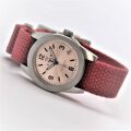 京都の知恩院前に創業した全国的に有名な 「一澤信三郎帆布」 の熟練した職人によって、一つひとつ手作りであるのは勿論、バンドは糸の段階から丁寧に染色し、使うほどに味が出て自然と馴染んできます。 バンドの素材は純綿で、糸からオリジナルの色に染め、しっかりと厚手に織り上げ、頑丈な特製オリジナル金具を取り付けました。 通気性の良い天然素材の綿ですので、汚れを感じたらブラシなどで洗うこともできます。 使えば使うほど愛着がわき、自分好みに変化する色はこだわり派にはたまりません。 色は全て天然染めで、12色からお選び戴けます。