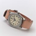 SPQR自信のオリジナルバンドは日本製のNATOタイプのレザーストラップです。 原皮の仕入れからなめしまでを行う日本でも数少ないタンナーで造られた革 【栃木レザー】 です。 世界でもまれな「ダブルピット製法」で約1か月という長い時間をかけてタンニンを革の芯まで浸透させ美しく堅牢な革に仕上げてあります。 その革を熟練の職人が一点づつ裁断及び縫製をしました。 「NATOタイプ」とよばれる使い勝手のよい裏通しタイプですので高い利便性を誇ります。 レザー裏面は加熱処理でスムースな表面に仕上げ 【SPQR GENUINE LEATHER】 と刻印してあります。 裏通しですので専用工具なしで、ご自身で簡単にバンド装着、交換が可能です。 バックルはドイツの馬具メーカーが創るステンレスの高い耐久性を誇ります。 色は人気の高い4色からお選び戴けます。
