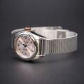 貴重な小型サイズの12時位置りゅうず 手巻き付き自動巻機械式です。 無駄のない正統派スタイルと5気圧防水の安心仕様。ムーブメントは国産の小型サイズで手巻と自動巻の併用可能。スッキリデザインの3針ストレート。 クラシカルデザインのケースはオールステンレススチール製です。 文字盤は4箇所アラビアと8箇所バーインデックスの大変読み易いレイアウトでアイボリー、ピンクの2色から選択できます。 夜光付きブルーIPの針を搭載。