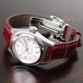今では入手至難となった貴重な小型サイズの手巻き付き自動巻機械式です。 無駄のない正統派スタイルと5気圧防水の安心仕様。 ムーブメントは国産の小型サイズで手巻と自動巻の併用可能。 スッキリデザインの3針ストレート。 クラシカルデザインのケースはオールステンレススチール製です。 文字盤は4箇所アラビアと8箇所バーインデックスの大変読み易いレイアウトでアイボリー、ブラック の3色から選択できます。 アイボリー文字盤には夜光付きブルーIPの針を搭載、ブラック文字盤には夜光付きシルバー時分針と先端がレッドのホワイト秒針を搭載しています。
