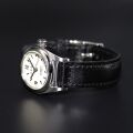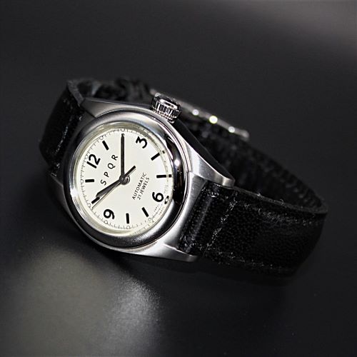 今では入手至難となった貴重な小型サイズの手巻き付き自動巻機械式です。 無駄のない正統派スタイルと5気圧防水の安心仕様。 ムーブメントは国産の小型サイズで手巻と自動巻の併用可能。 スッキリデザインの3針ストレート。 クラシカルデザインのケースはオールステンレススチール製です。 文字盤は4箇所アラビアと8箇所バーインデックスの大変読み易いレイアウトでアイボリー。 太目のシルバーの針を搭載し視認性を高めた特別バージョンです。 10本限定の為、Ventuno fs-X です。 X はローマ数字の10を表しています。