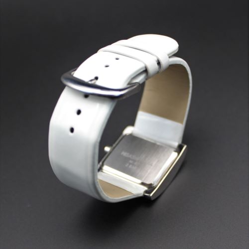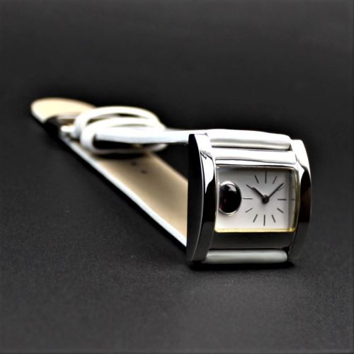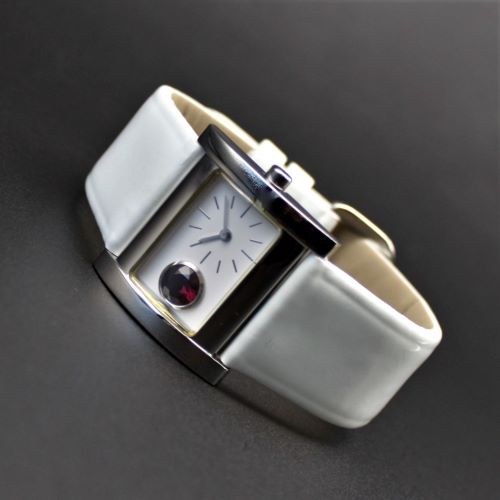 原 久デザイン 紅玉ルビー埋め込み文字盤 2針AQ レディス カマボコ型ステンレスケース × ホワイトウレタンベルト】 【特別価格 限定1本】