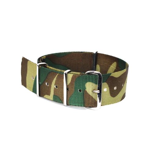 【英国ウエールズ工場 独自ルート直輸入時計バンド 国防省認定工場】 入手至難・NATOストラップ・グリーン&ブラウン系カモフラージュ 22mm 【限定9本】