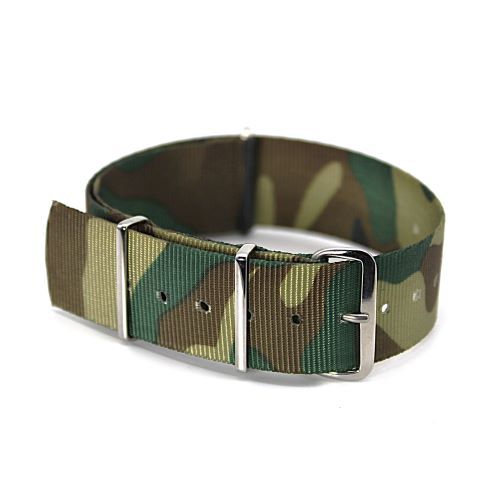 【英国ウエールズ工場 独自ルート直輸入時計バンド 国防省認定工場製造】 入手至難・NATOストラップ・グリーン&ブラウン系カモフラージュ18mm 【限定5本】