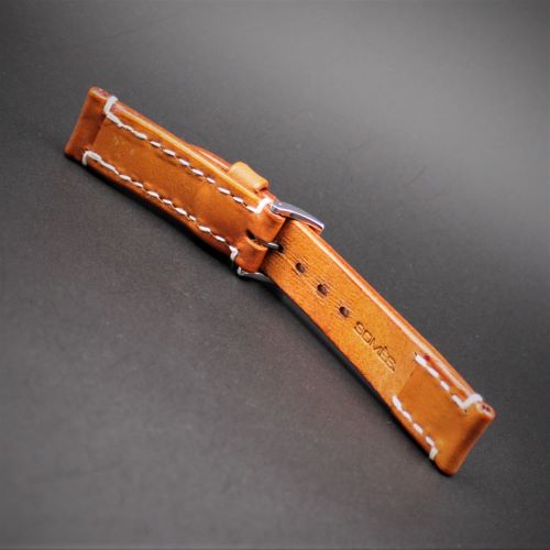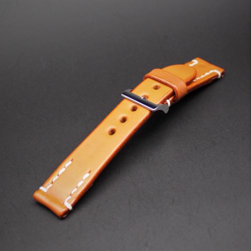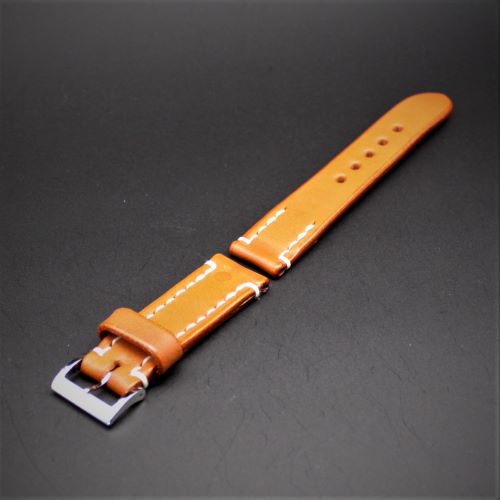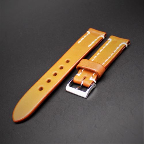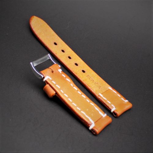 • 【 SOMES馬具職人手縫 4mm厚の丈夫なサドルレザー×ステンレスバックル 】 SOMES × SPQR サドルレザー・キャメル×白ステッチ 21mm幅(20mmでも装着可能)  【 プロト品 限定1本 】