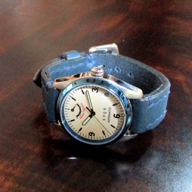 【初代復刻モデル SPQRイチバン人気の手巻付自動巻パワーリザーブ】 Ventuno pr 初代復刻アイボリー文字盤 × ブルーベゼル バンドは無垢ステンレス ・SOMESサドルレザー7色から選択 【限定2本】