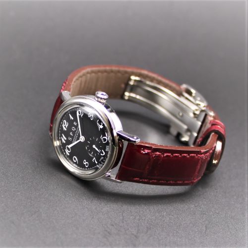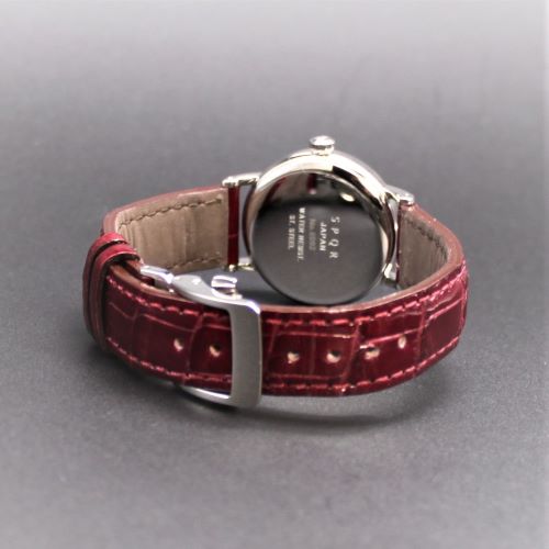 【SPQR φ28mmの絶妙サイズ ・ THE SPQR のコンセプトを踏襲しシンプル・レトロ・小秒針】 THE SPQR LQ ブラック文字盤 × 高級クロコダイル・ワインレッド×ワンプッシュ式Uタイプバックル 商談用 30%OFF 1本限定