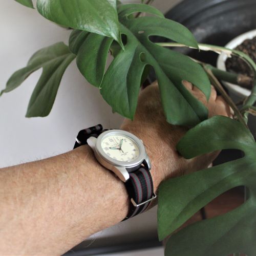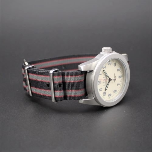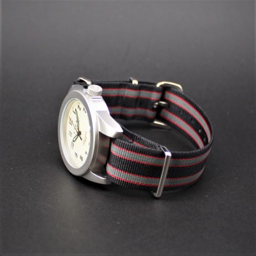 SPQRが MOD(Ministry of Defence・英国防省)が認定した英国内の正式なコントラクターで製造されたナイロンストラップを直接調達しています。 安価なイミテーションとは全く異なり、全ての接合部分は超音波モールディングで接合され、ストラップの穴及び端末は完全にシールドされていますので抜群の耐久性です。 裏通しですので専用工具なしで、ご自身で簡単にバンド装着、交換が可能です。 色は人気の高い4色からお選び戴けます。