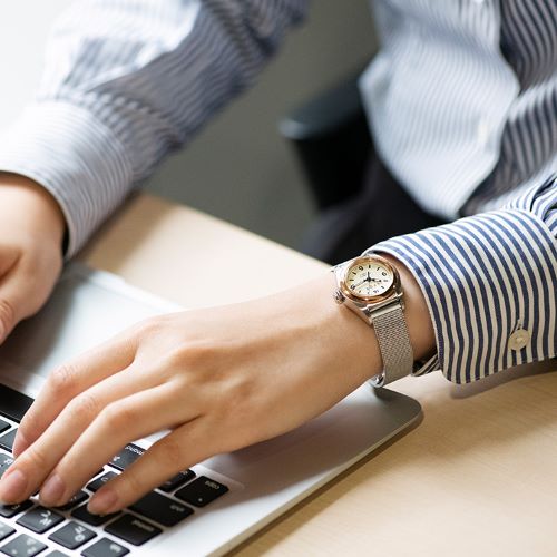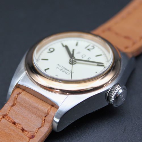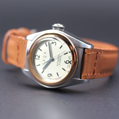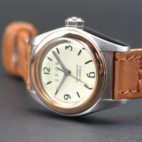 【 SPQR 誕生以来の超定番 レディス手巻付自動巻機械式 バージョンアップ仕様 】 Ventuno fs-X ピンクゴールドベゼル アイボリー文字盤 × SOMES高級カーフキャメル 【プロト在庫 1本限定】